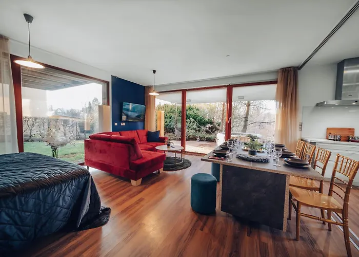 이 240m^2 아파트는 프라하 바츨라프 하벨 국제공항 공항에서 15km 떨어져 있습니다. 투숙객들이 테라스에서 즐거운 시간을 보낼 수 있습니다.